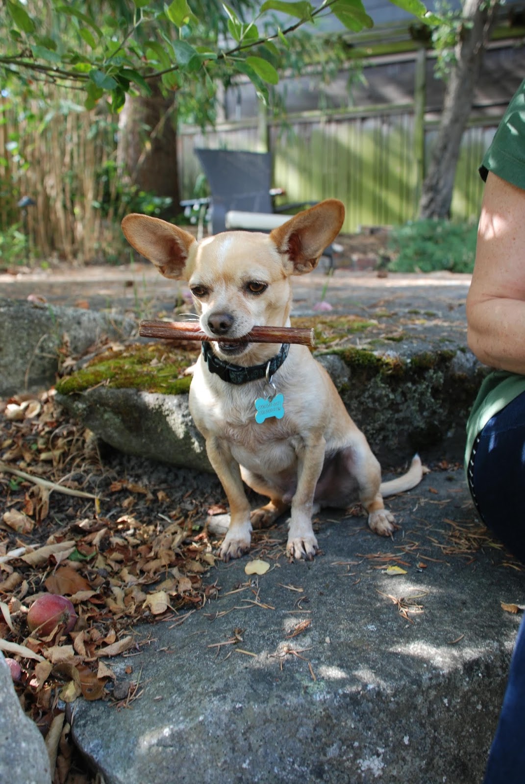 My treat is coffee. Pico often has a chew stick. He likes to bury it.